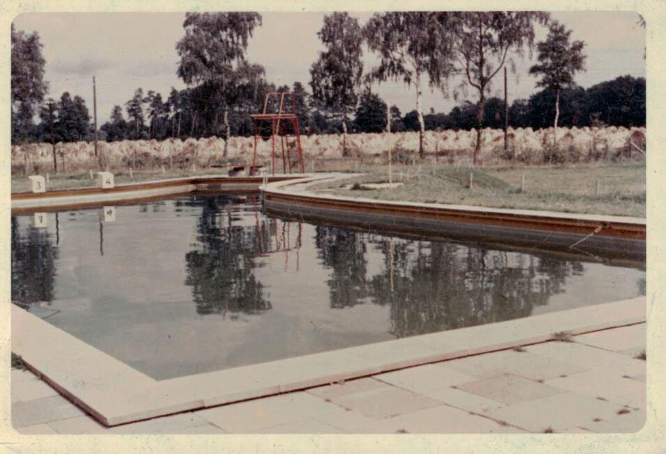 Schon die Fotos von der Eröffnung zeigen, dass das eisenhaltige Grundwasser der Umgebung die Beckenfüllung sehr rot/braun aussehen ließ, weshalb bereits im Jahre 1961 ein Filter eingebaut wurde.