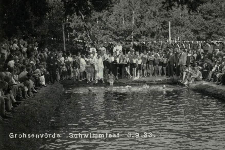 Dass diese Eröffnung in eine Zeit fiel, in der in Deutschland - und sicher auch in Großenvörde - Ansichten Raum griffen, die einen „gesunden Volkskörper“ in den Mittelpunkt stellten und dieser auch in der Eröffnungsrede besprochen wurde und dass beim Schwimmfest 1933 schon eine Hakenkreuzfahne wehte, soll hier nicht verschwiegen werden. Das dort in den Vordergrund gestellte Gedankengut ist eindeutig zu verurteilen und zu verdammen, soll aber den innerörtlichen Gemeinschaftssinn, das Engagement und den Fleiß, die die Grundlage und Voraussetzung für die Errichtung bildeten, nicht schmälern.