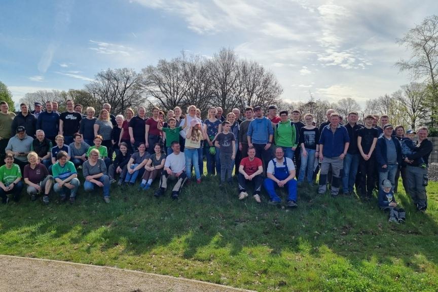 In Großenvörde in der Gemeinde Warmsen steigt die Vorfreude auf die Eröffnung des zur Zeit noch in Sanierung befindlichen Freibades ins Unermessliche. Auch wenn sich aktuell die Arbeiten an den Außenanlagen aufgrund der weiterhin nassen Gesamtsituation und der scheinbar niemals aufhörenden Niederschläge weiter verzögern, fanden sich über 80 (!) Helferinnen und Helfer ein, um rund um das Freibad und das Freizeitgelände, das schon fertig gestellt ist, anzupacken. Unter der Führung des SC Grün-Weiß Großenvörde fand dieser Einsatz innerhalb der Kulturgemeinschaft statt. Das Ziel, das Freibad im Juni zu eröffnen, wird leider immer ambitionierter, aber dennoch gibt es auch jetzt schon viel zur Vorbereitung zu tun. Die Reinigungsarbeiten im Becken wurden begonnen. Die schon angelegten Grünanlagen wurden gepflegt und weiter gestaltet. Die Winterschutzeinrichtungen konnten schon entfernt werden und die Demontage des alten Zauns wurde begonnen. Die Grundmauern des zukünftigen neuen Kiosks sind errichtet. Gleichzeitig kümmerten sich die Grün-Weißen um die Tennisanlage, die umliegenden Grünflächen des Dorfmittelpunktes und die Altpapiersammler waren auch noch unterwegs. Diese sind auf dem Foto leider tlws. nicht zu sehen. Vorstandsmitglied Bianka Siebert zeigte sich begeistert von der unglaublichen Beteiligung und meinte: „Heute haben sich die Großenvörder wieder einmal selbst übertroffen. Es ist sehr schön anzusehen, dass hier jung und alt gemeinsam anpacken und ihren Ort weiter entwickeln möchten.“ Zur Belohnung gab es für alle ein leckeres Mittagessen im Dorfgemeinschaftshaus, das bis auf den letzten Sitzplatz gefüllt war.